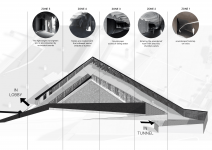 1. A unique feature of the concert hall is a soundscape-enhanced entrance tunnel that prepares visitors for the concert experience. This immersive space incorporates both natural and artificial sounds, from the gentle trickle of water to dynamic musical compositions, creating a multi-sensory journey.
