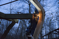 My role within the team of ten was to coordinate the various teams, weld the metal components, assist in the fabrication of the laminated components, and build a system to automate the production of the panels and aluminum parts via CNC.