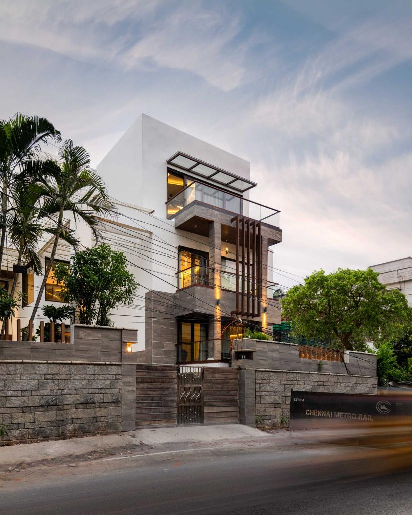 Located on a bustling residential street, House #1 underwent a complete transformation 17 years after its initial construction. Designed to integrate Vastu principles with modern aesthetics, the home was re-planned across all three floors, adding new spaces on the terrace to meet the evolving needs of its residents. Situated in a termite-prone tropical climate, the house faced severe water leakage issues, which were thoroughly addressed. Sustainable features like solar panel heating and rainwater harvesting were introduced to promote eco-friendly living.