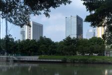 The project is located in the West Area of Pazhou Island, a new business and innovation urban district that Guangzhou has been focused on developing in recent years. The project has a height limit of only 100 meters and a floor area of about 30,000㎡. With the given height and scale, it is inevitable for this building to be buried among its surrounding skyscrapers.