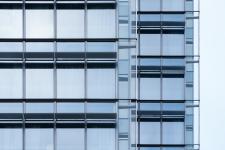 Cantilevered glass fins at the edges of the façade are supported by tapered steel beams. During construction, the corner curtain wall modules are installed before the glass fins, and finally sealed with aluminum panels.