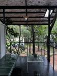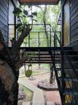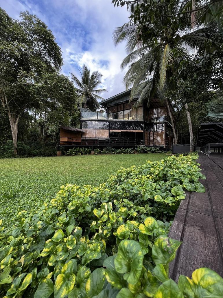 As the concept called "Between Trees' of this project, every building block was meticulously designed between trees in harmony to increase the natural ambiance of the spaces where the materials lightly touch the context while maintaining privacy. Mainly, the semi-open restaurant that is raised on the ground and overlooks the water body welcomes the guests in a neutral way to embrace the rhythm of the waterway flowing near the site and seamlessly integrated into the natural topography of the site, which can be minimized site disturbance and preserve the natural environment, fostering harmony between the built environment and the surrounding landscape and it often provides breathtaking direct views of the front lake while creating a cozy yet sophisticated ambiance. The open-plan dining area that blurs the boundaries between indoors and outdoors flows effortlessly into an outdoor floating deck for relaxation. The entire property mainly focuses on eco-friendly construction, using reclaimed materials like discarded concrete light posts and used steel 'H' irons both to minimize waste and reduce reliance on wood as well as cost-effective, which prioritizes preserving the natural environment by avoiding cutting down any tree at the site during the construction process. The use of recycled materials fits contemporary trends and has magnified the characteristics of the buildings. Especially, the concrete light posts which become the main icon of the skeleton. A gentle peace and harmonious feeling are created by the simply modern architectural layout with a traditional architectural shape. This combination of building materials meets the aesthetic, artistic, and formal requirements while maintaining the energetic, ecological, and economic aspects as well as steel and concrete used to enhance the rustic value of the buildings.
