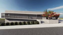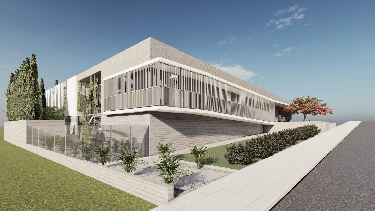The single sloping roof, inverse to the slope of the ground, unifies and calms all the arrangements and elements that make up the whole composition, which is framed by green, high or low, solid or perforated, according to the uses and requirements of each area.