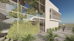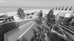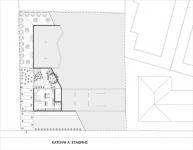 The neighbouring southern green space mentally penetrates the plot creating the "back yard" of the house which represents the reference point of the whole composition. It then extends diagonally towards the north-east and by descending to a semi-roofed lower level, it opens up towards the eastern boundary of the plot, thus allowing the natural elements, light, air and rain to move freely through the project.
