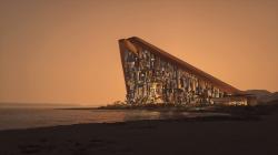 The progressive architectural centerpiece is a beach-front complex with a spectacular cantilevered structure. Rising from the coastal landscape, it will house 190 luxury sea-view apartments alongside a range of dining experiences, signature retail stores and garden spaces. ‘Different textures of glass and metallic surfaces are adopted to create a vibrant movement of shade and light.’ Ignacio says.