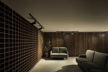 The height of the commercial space was low, so it was decided to use vertical striations and veins to gain height and a neutral color palette, as well as natural materials, so that when this space reaches its maximum capacity, it does not create a feeling of overcrowding. Similarly, a single narrow entrance to the space was used to stress this transition and allude to a larger space inside. In this project, the choice of materials is limited to the exclusive use of walnut, quarry stone, and marble, while changes in ambiance are achieved through the use of lighting.