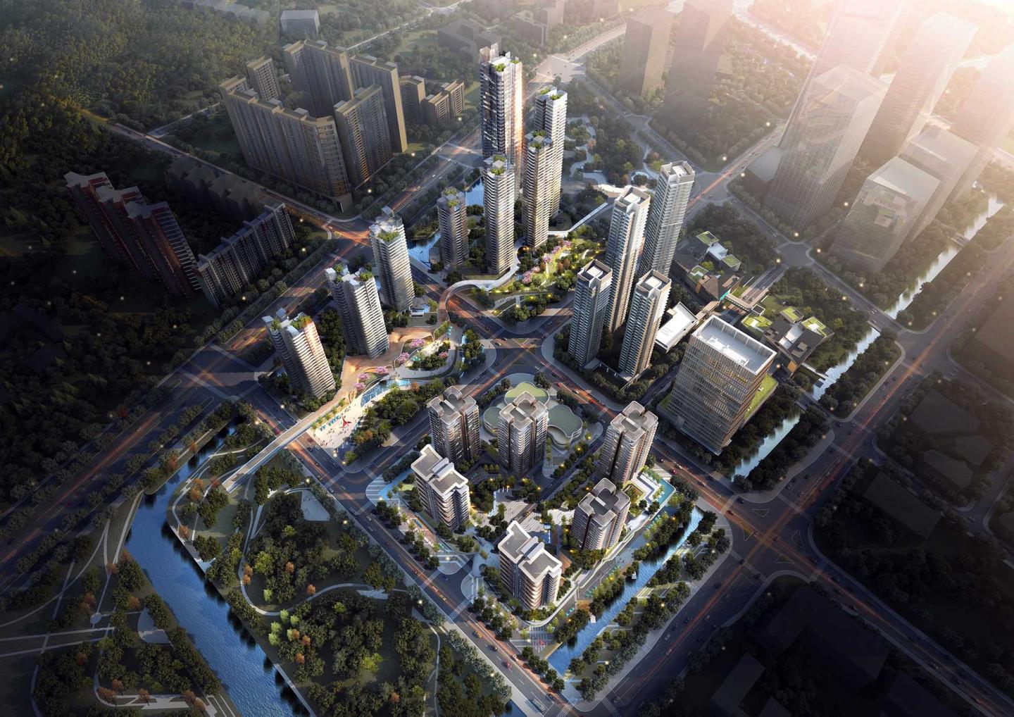 The project aims to create a garden community that blends with nature. In terms of planning, a combination of slab-type and dot-mode building shape is adopted to form a visual corridors at various interfaces.