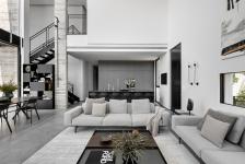 Unlike many new homes in Israel, where the unmediated connection between the outside and inside is a derivative of open, unobstructed views between the two arenas, in his private home, Hadida managed to express the connection between them in another way: he employed the facades as a visual element - they penetrate the building and become an integral part of the interior spaces' experience. The boundaries between the wings blur, and the architecture is interwoven, becoming an inseparable part of the interior design.