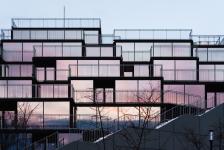 An innovative city complex was completed in the microdistrict Evrobereg in the Russian city Novovsibirsk. In this project architects enforced ties with local culture and fit a traditional parking in the building, which looks like rock.
