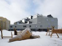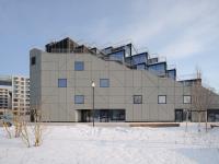 standing separately. However, bureau SVESMI, the authors of architecture, offered to design this building as a multifunctional object which will be useful for residents and citizens both. So they developed an original typology — parking with offices and commercial spaces that suit working and relaxing. This approach satisfies the residents' requirement to have a parking, forms new retail and services and supports business activity.