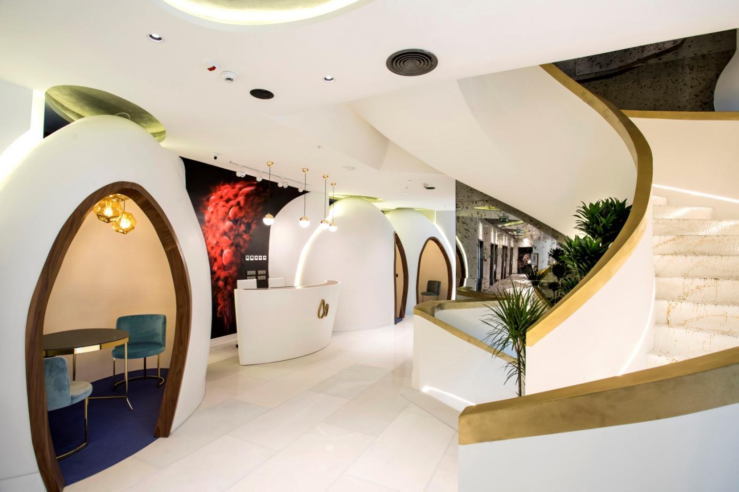 Quasar Estetik International started with a great innovative approach and excitement. It would tell a great story of renewal and rebirth. When AAD Architects started planning, they prepared function diagrams at first and the resulting diagrams guided them and designers wrapped them with their story. Because Quasar Estetik International would tell about the day a fetus was born in the womb. It was a kind of spiritual gateway to a second chance at renewal that gave humans in the world. The fact that this rebirth was gifted to humanity as a great wealth with science and art was also considered as the fruits of our story.