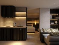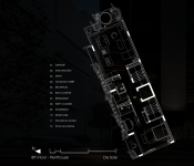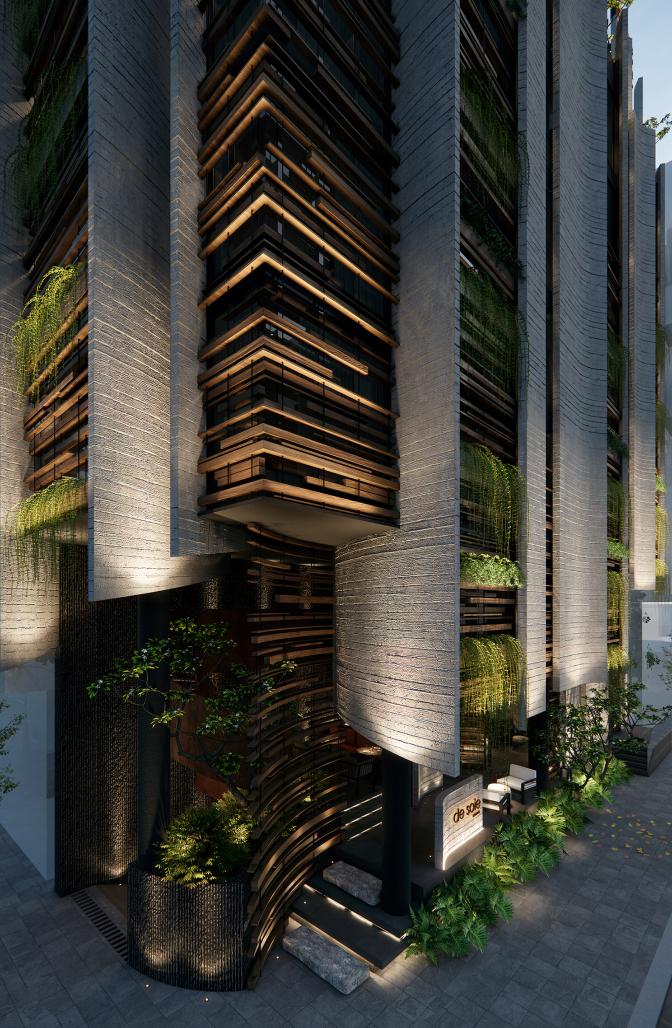 With an area of 150 m2, this project is planned with 8 floors. We are focus on developing a culinary space on the 2nd floor. The 1st floor is devoted for creating a traffic landscape that connected to the 2nd floor, and connecting the street f&b business model around the 1st floor sidewalk at the same time. The receptionist is at a small area in the lobby with moderate service needs. The soft image of multi-colored silk strips interwoven is the main idea guiding this connection. Dry grass bushes, old steel structures, salvaged floodwood,... all of these materials create a space full of nostalgia for old things - bringing a "slow down" experience when people enter this place. 3rd-7th floors are designed for resort rooms with many multi-purpose amenities but it is very close to rustic local materials: polished stone, natural wood, rough concrete... The entire open space connecting with each other and prioritizing the inward experience, separating it from the outside through layers of greenery and wooden lamellas. The rooftop is designed for a garden combined with a swimming pool, but it is covered with layers of greenery that makes it feel like entering a high-altitude forest with rustic local materials such as pebbles and recycled old wood.