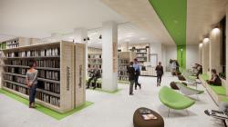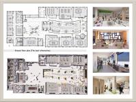 Spatial variety was created in the library, a space was designed for individual study, collective study and group work. Green color was used as the best color for learning spaces that cause relaxation, peace and harmony, and the legibility of the space was provided by typography and color. Attention to natural lights and optical luxury, artificial lights and green space can be seen compared to the existing situation in the space.