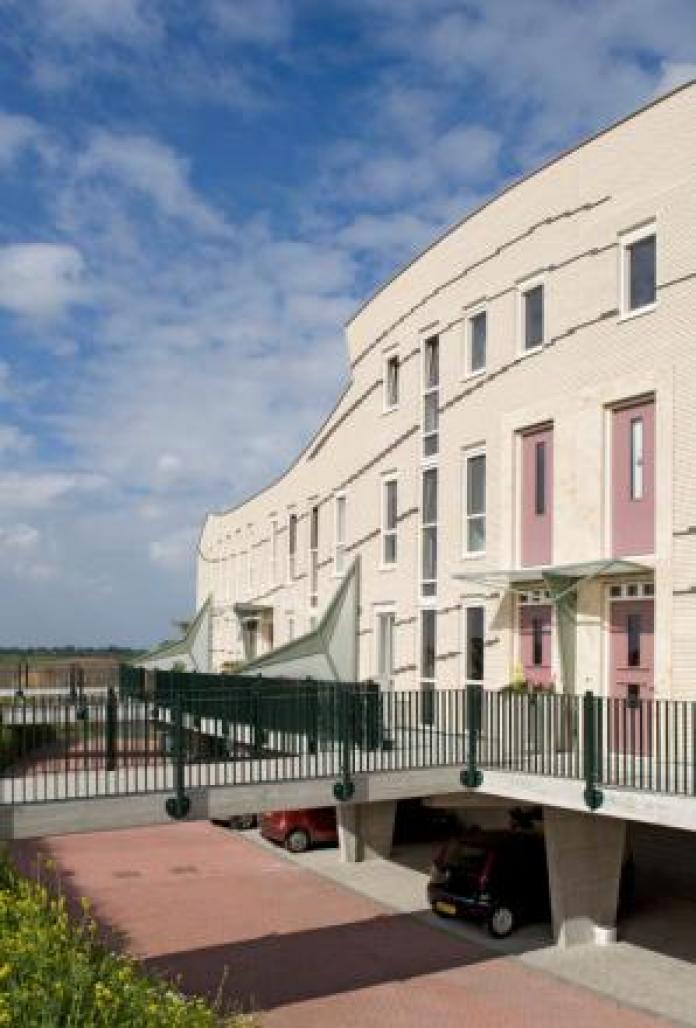 Skoatterwald is a newly built housing project in Heerenveen, { town planning by Ashok Bhalotra}. In this district lies a second new country seat Heerenwoud. The plan is situated in a sloping landscape in English style, in opposite of the first country estate “Het Zwanenwoud” in a tight / firm French style. A notable element is the water running through the midst of the park.