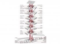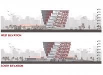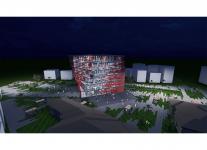 The project consists of two ramps, one end of which extends to Kıbrıs Şehitleri Street and the other end of which extends to the tram stop in that area, and 6 floors located where these two ramps connected. Each floor has a square form and is 289 square meters. In the building layout, a gallery space of approximately 170 square meters were used in the middle, and the functions of the floors were distributed from the ground floor to the upper floor in a more silent way. The facade design of the building has been designed separately on each facade, in accordance with its rotating form, and a distribution has been created to receive light in a sunny city like Izmir, while also consuming the least amount of energy for cooling. Thanks to the solar panels on the roof of the building and on the interfaces formed as a result of rotation, the library can produce the annual electricity needs of approximately 82 households.