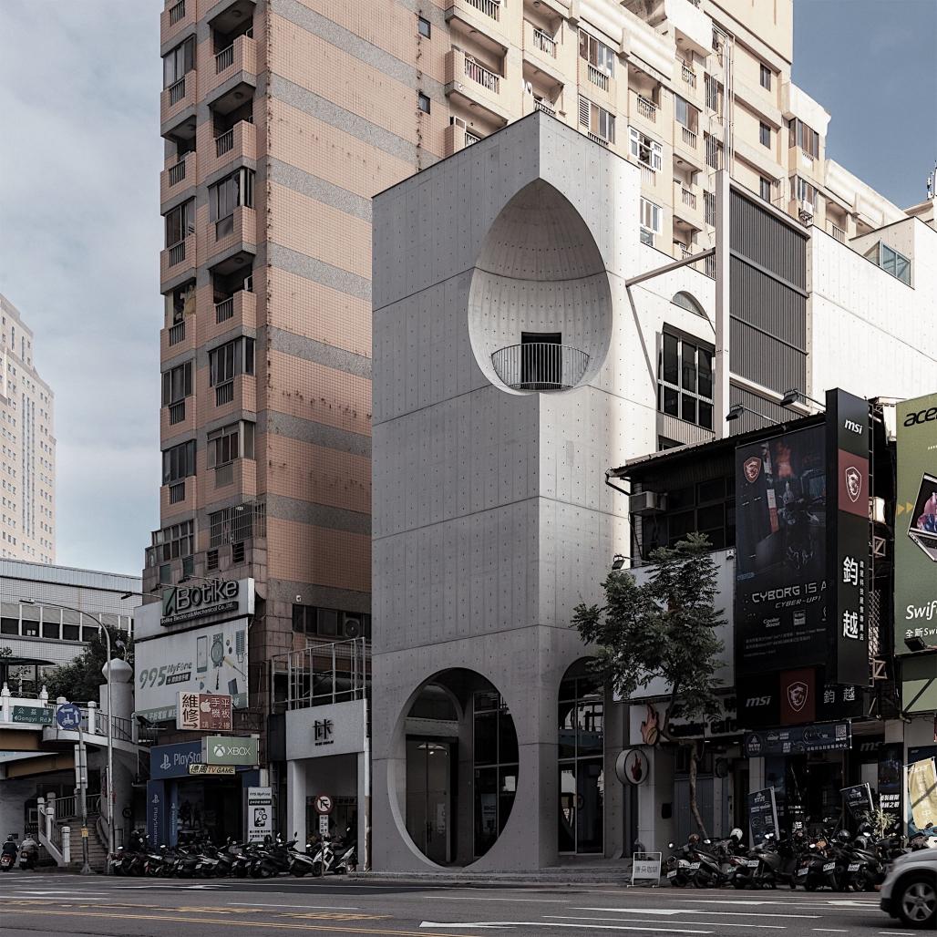 This case is constructed with fair-faced concrete. In terms of design method, the architect used round elements as the architectural technique this time, mainly to balance the rigidity and sharpness brought by the square geometry, and to use smooth elements to reduce the visual impact of this building on people.