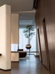 Once interconnected, each independent space has a clear function, with circulation paths linking different functional modules, expanding into multiple composite spaces. They overlap and are used together. The office area, lounge area, and tea area make up a narrow space group along the windows. The Western dining area, Chinese dining area, and lounge area are situated on the northern side in opposition. North and south spatial groups are interconnected through intersecting walls, sliding doors, low TV walls, and electronic fireplaces, facilitating an internal network of multi-use, and versatile space organization.