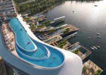 Towering elegantly along the waterfront, an iconic architectural masterpiece, stands as a visual icon, welcoming visitors who arrive by sea. Drawing inspiration from the container terminals' portainers, four high-rise residential towers are interconnected by a skydeck at above 100 meters. This innovative design creates the illusion of a 'floating city' against the horizon. While partially serving as a private club facility for residents, the skydeck also offers public access via separate lifts, ensuring that this unique space can be enjoyed by all.