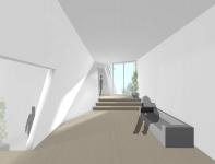 First, the center wall bent in two divides the site diagonally and two-dimensionally on the first floor and straight on the third floor. Next, the floors were skipped, and the buildings shape was squashed in a parallelogram in order to keep a adequate distance from the sites borders. The final step was to slope the roof. In this way, various spaces came to be created so that a number of changes can be experienced as one moves along or through the bent wall.