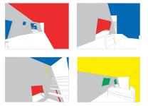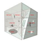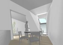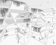 The typical method for designing a house would assign rectangular rooms with specific functions and lay out them. Such a design produces a series of rooms of similar size and causes monotonous spatial experiences. Our approach was to avoid the conventional design practice and to create a structurally rational but spatially heterogeneous house.