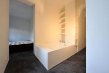 The choice for this 140-square-meter apartment was to concentrate only on essential geometric lines, in a strictly contemporary fashion. Contrasts stand out between horizontal and vertical planes, as well as between full and empty spaces. These contrasts have allowed for the creation of unique design elements, encompassing brickwork, outfitted walls, shelving, bathtubs, bookshelves, beds, the kitchen and plays of light throughout. Said elements were not an afterthought but rather conceived of during the renovation plans, so as to give a homogenous look to the house.