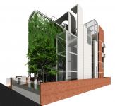 entering into the south edge tree foliage. The intention was to “dwell in an urban house within a forest”.
