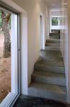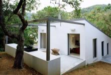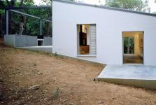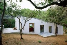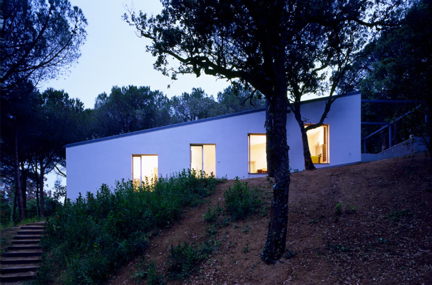 As a response to that situation, this project looks to respect the natural environment on this strongly slopped plot with dense Mediterranean vegetation. We tried to modify as little as possible the environment by building the house on a slope, and thus reducing the land movements, foundation and generation of waste products. We also have maintained the vegetation in order to not lose the current shaded and cool ambience as well as a sensible design of the exterior elements – wooden stairs following the natural slope and a minimal perimeter fence.