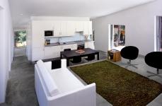 Through this section’s adaptation to the original topographical profile, we were able to connect each of the interior ambiances with the garden through wide regular openings that fuses the exterior with the interior; it assures permanent natural light, allows cross-ventilation and multiplies the control options of interior comfort. At the same time, its growing sloped geometry towards the south facilitates the renovation of hot air through the superior façade, and the capturing of new fresh air thorough the inferior one, towards the north.