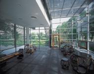 To realize this goal, a two-storey corridor was built to connect the original houses and mobilize the space. The corridor was made of glass in order to reduce its influence on the surroundings. From north to south, the courtyard could be divided into several parts, whose images were the reflections of the ancient Chinese landscape architecture. The front courtyard and entrance, the maim space, the lobby and atrium, and the salon beside the pond can be respectively compared to the kiosks, central halls, courtyards and terraced pavilion in the ancient Chinese architecture.