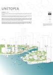 Unitopia :Unit + Utopia. According to Oxford Dictionary, one definition of “unit” is an individual thing or person regarded as single and complete but which can also form an individual component of a larger or more complex whole. Utopia means an ideally perfect place, especially in social, political, and moral aspects. Unitopia combines the terms, unit and utopia, to create new kind of city patchwork that forms an ideal city. In Unitopia, ecological walls called The living skins cover building surfaces in the city like skin of living organism. The living skins are consisted of not only the units of natural material produced by technological method and primitive process but also human behavior and local culture.Bangkok, the capital city and the largest urban area of Thailand, is taken to be the testing ground of Unitopia. Known in Thai as Krung Thep Mahanakhon – City of the Deity, it is the location of cultural landmarks and attractions. Its history that associates with the rapid modernization is reflected in its cityscape and the urban society. The hybrid development in recent years lets the city growing up without planning, the local and natural approaches of material using and construction method have being overshadowed by the modern technology. Although they are precious representations of the country’s identity, they are going to be abandoned. The Unitopia tries to merge local identity and natural unit to everyday life by the transformation of natural form. Not only do the desalination system in building part under the river but also Hydronic and ventilation method are composited in the façade gradations of fish scales and bird feathers. These units can be also adapted and spread out through the city to become the Unitopia. From a small point to a big scale of the city such as the ship bollard, interior wall, exterior wall, roof, bridge, and the skyscraper can become the part of ecological interface with hoping to change the hybrid city to be the local town that people can touch it more closely.