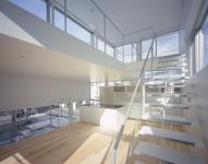 The L-shape frames constitute each element and spaces in the house, such as entrance hall, living room, inner terrace, and roof, and the L-shapes are seen on both of plan and section. The composition of the frames results a three-dimensional and continuous room, which is consisted with the gently opened and closed spaces.