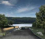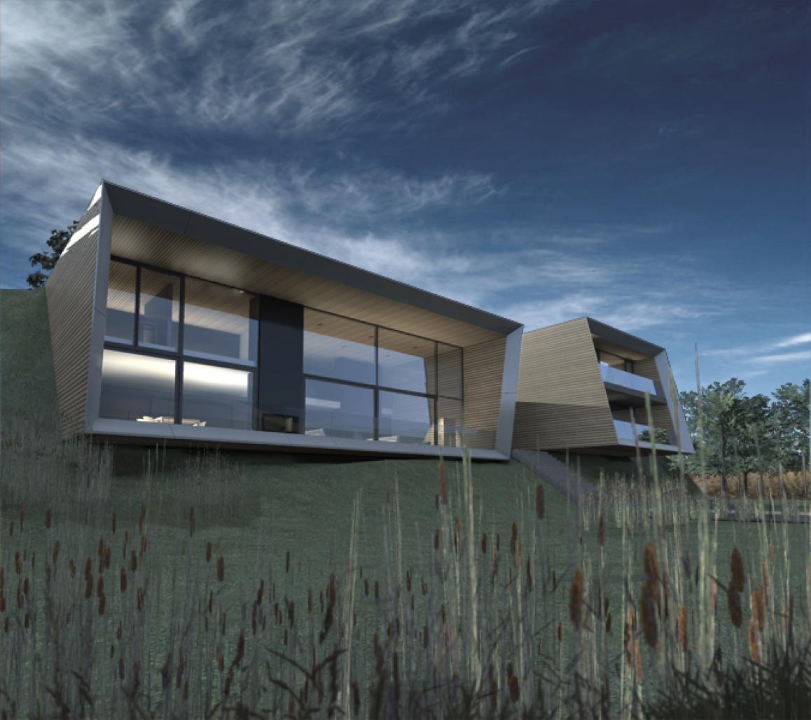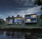 The objective was to create a country house hidden in the landscape. The building is situated by the lake.