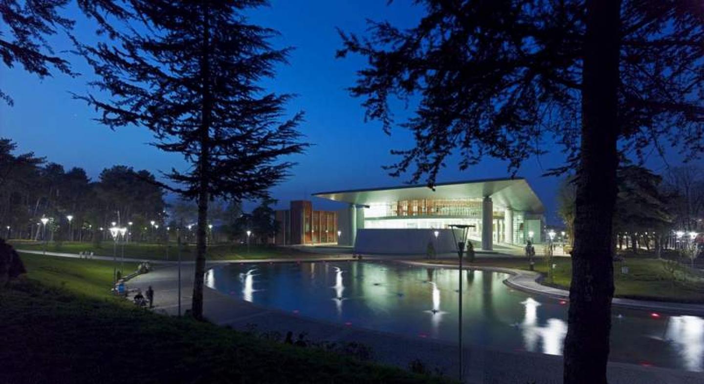 The Atatürk Opera and Concert Hall has been designed to integrate both formally and functionally with the Merinos Culture Center and Park. It includes a 1650-seat concert hall designed for opera, ballet and symphony orchestra performances, an 850-seat auditorium for conferences and concerts, a smaller 400-seat concert hall, a ballroom with a capacity for 1000 people, galleries, a cafeteria and other facilities. This complex fulfills an important socio-cultural need of the city of Bursa.