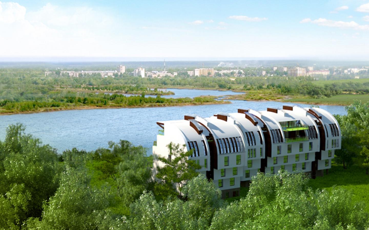 Apartment house high-rise on the high banks of the Volga. The idea - to live and enjoy.