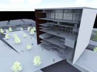 WEST FACADE OF THE BUILDING IS A MEDIA FACADE AND IT FACES TO THE OPEN AIR CINEMA.