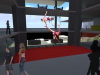INSIDE OF THE CUBE THERE IS A MOBILE PERFORMANCE PLATFORM.