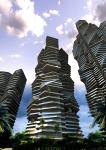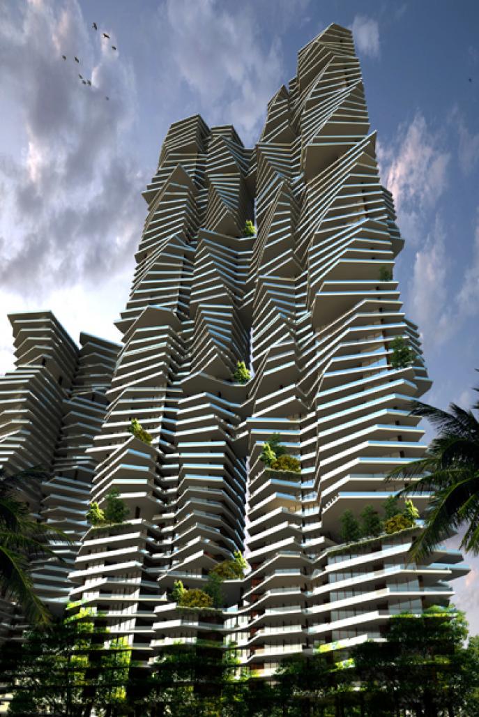 THE RESIDENTIAL APARTMENTS IN TWO WINGS ARE PLANNED WITH THE SERVICE CORES ON THE SOUTHERN FACE, CROSS VENTILATED APARTMENTS ANGLED WITH VARYING VIEWS OF THE SEA AND NATURALLY VENTILATED CIRCULATION SPACES. LARGE SEMI OPEN TERRACE BALCONIES FRONT EACH APARTMENT ON THE NORTH WITH SEA VIEWS.