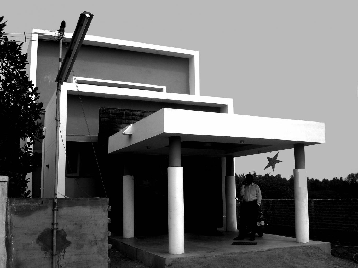 Nithilam is designed as an independent villa at Kottayur, Tamil Nadu. The Cubistic 3 Bed room villa is designed on split levels with the staircase as the central core. The open to sky court brings light and life into the house and visually connects the split levels.