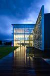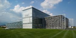 The project features two non-perpendicular intersecting parallelepipeds. Planimetric distribution is based on the ideas underlying Feng-shui. The building is orientated on an east-west axis in order to fully exploit the solar cycle. The two underground floors accommodate the car park and a showroom of over 2000 square metres. On the floors above ground, the transverse building is dedicated to reception and restrooms; the longitudinal building hosts the company nursery, canteen, offices and conference hall. The layout of the offices is flexible and easily adaptable to future needs due to the use of a floating floor and mobile partition walls. The cantilever first floor creates a covered area to serve the nursery and canteen. The building uses the best heat-sound insulation techniques, providing workers with a quality environment and quality services (canteen, company nursery). The longitudinal building is defined by a continuous structural façade; the double-skin curtain wall of the transversal body, with low-emission extra-light glass windows, is of the semi-active type that affords high energy savings; it is regulated by air extractors and curtains to ensure excellent wellbeing (greenhouse effect in winter – chimney effect in summer).