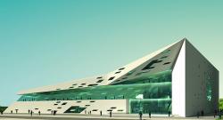 The Research Centre has an expressive and emblematic radiation, underscoring the importance of the building into the overall urban planning concept of Block 39. Both the plan and the volume of the building radiate dynamism and impetus managing to direct this energy to the visitor. The main part of the building is the volume that contains the body of the planetary sphere and it is located along the main communication axis. The total volume flows from the 33 meters high peak to the end of the building through various inclined planes, which are linked dynamically with the university buildings and The Scientific Institute. The plasticity of the building is achieved through clear and simple geometric shapes, stating definitely the function of the building and inspiring to science, education and development. Some glass pixels and openings, different in colours and glare, complement the dynamics of the spaces and make them more vibrant and interesting. The planetarium is hanging in the space of The Research Centre, overt and visible from either the square or The Scientific Institute through the pixel openings. The mirror surface of the planetary sphere gives a distorted and abstract representation of the surrounding environment. There is a water mirror in front of the planetarium. It complements the view and represents it in a different way stimulating further visitors’ senses.