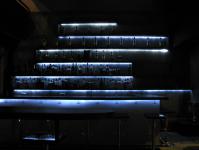 At the main section of the bar the ‘double’ height was maintained and the four vaults were set off using perimetric hidden lighting.