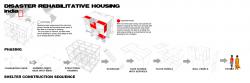 The project explores the design development of housing within the scenario of Post Disaster Rehabilitation of populations displaced by natural disasters. By looking at the house as a system that combines two distinct phases of rehabilitative housing, namely Transitional Housing and Durable Housing, the design seeks to reduce the complications of relocation every time there is a need to move on to the next phase of shelter aid.