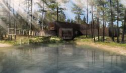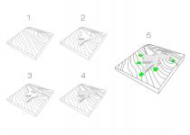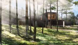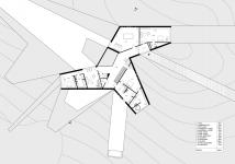 The Tree House will be located in picturesque surroundings of a pine forest on a natural hill. The geometry of the building is determined by the existing layout of the trees, which will remain in its original state. First floor of the building will be partly dug into the hill. Functional areas of the building are to be located in separate wings; thanks to such layout it will be possible to admire the nature from any place within the house. Similar approach has been taken on the second floor, where the wings of the building are slightly rotated relative to the first floor layout. This creates a set of terraces on the roof above the first floor. The envelope of the building will be composed of slate stone and smooth glass plates. The finished project together with the adjacent lake will give the impression of petrified wood, with an aura of mysteriousness and rugged elegance.