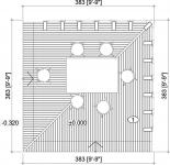 Dimensions of building are: built area 3.83m (9-9) x 3.83m (9-9) and height 3.80(9-8). Cantilever length 3.0m(9.84)