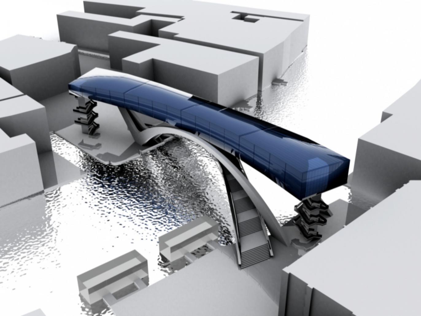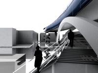 The project contains 2 spines: the lower spine of the bridge and the upper spine of the museum with two different entrances and two different circulations.