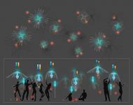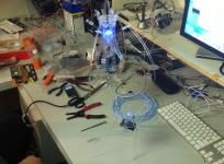 Kinematic bloom is the result of an investigation into the transformation of a simple source of light into an interactive and responsive set of luminaries. The entities of the bloom work together through proximity sensing, sound detection, light reaction and movement to create a dynamic interaction experience with its self and its inhabitants.