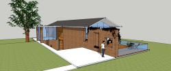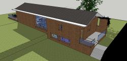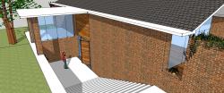 I was playing with Sketchup and the result was this 2 bedroom house, to be built with fired clay bricks. Load-bearing walls. No client. Location: my head.