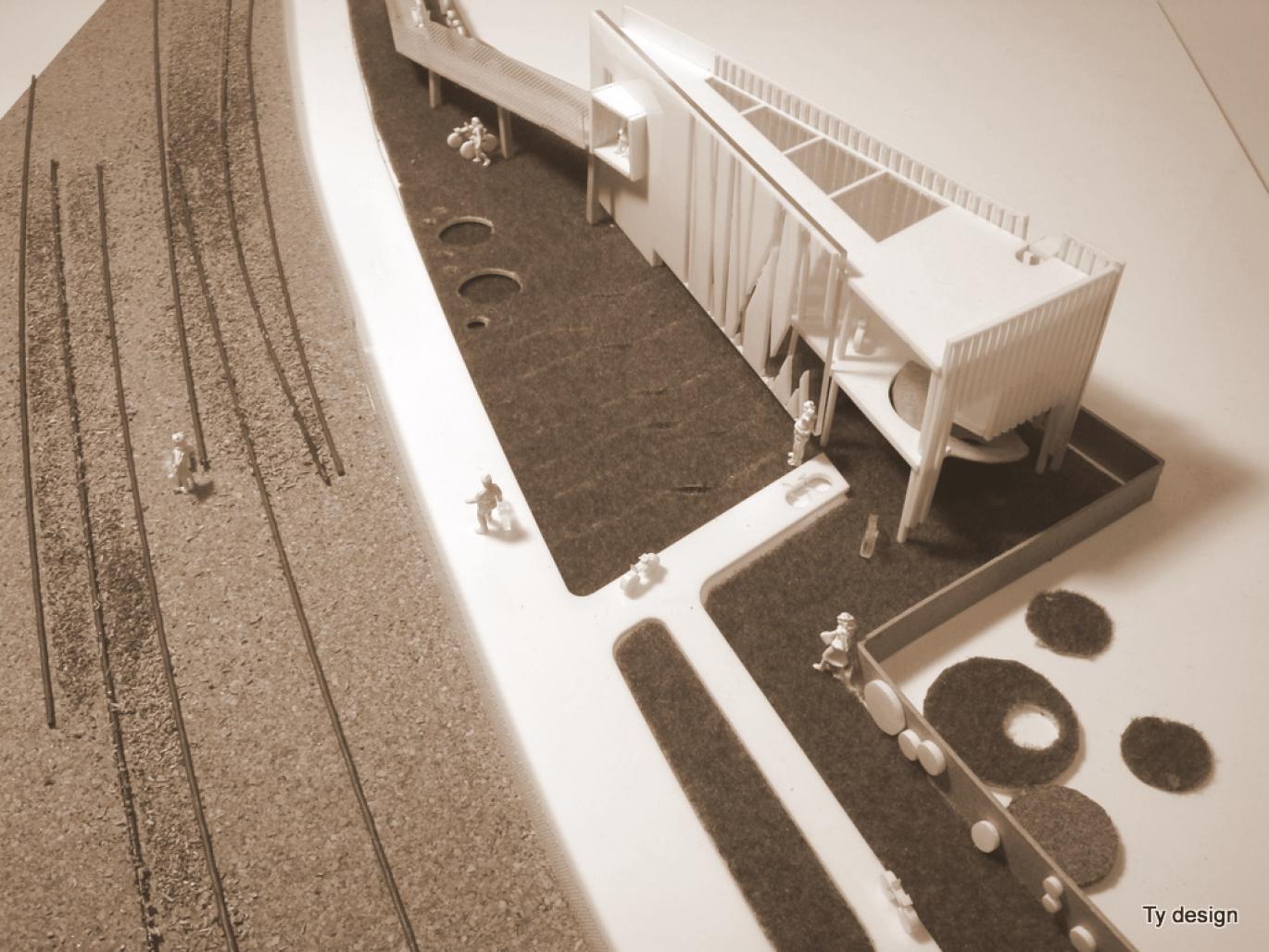Near by the Taiwan, kaohsiung seaport. the site locate on the 6th biggest port of world, this place contains the memories of Kaohsiung labors, and transport with the sea-line of train. This bicycle line re-construct on the old train road. Day by day, citizen enjoy the view of mountain around the train, this building try to find people together, and let people enjoy the playground, become a new stop of view point.