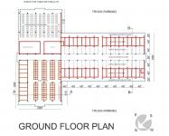 15’-0”x10’-0”. Besides, there are 11 larger shops of 16-0”x38-0”. The other smaller flange has been planned as farmers market or “Apni Mandi” as it is popularly known. After the grand success of weekly Apni Mandi in various sectors of the city this componant has been added in this modern market. The farmers will bring their produce directly to this place and sell it to the consumers, thus eliminating the middle man. This model is beneficial both to the farmers and consumers. The Apni Mandi is fully covered from top but open on the sides. It accommodates 234 raised platforms of 6x8 size each. These platforms shall be allocated temporarily to the famers to display their produce and sell it to the consumers directly. These platform and 10 feet wide circulation arteries in between have been planned in a Cartesian pattern for easy movement.