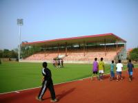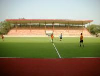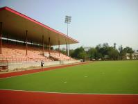 The Hockey Stadium at Rajindra College, Bathinda is one of these newly-built stadiums. The Rajindra College is a renowned institution of the Malwa region of Punjab established in 1940. The college has a sprawling campus with large open space for playing fields. A part of this space has been utilized for setting up the new Hockey Stadium. The stadium and its supporting infrastructure such as roads and parking occupy an area of about 8 acres. A ring road runs all around the stadium and provides access from all sides. Apart from the college side, it has been made approachable independently from two major roads - the Bathinda-Mansa road, and the Mini-Secretariat road.